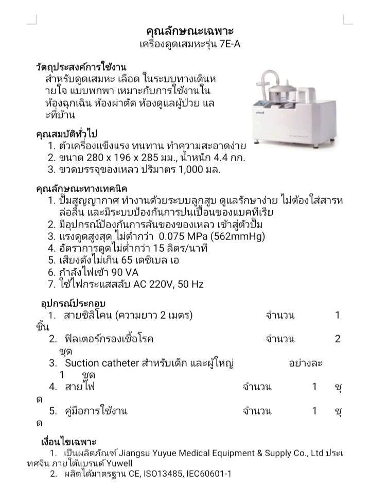 เครื่องดูดเสมหะ( Suction unit ) ยี่ห้อ Yuwell รุ่น 7E-A