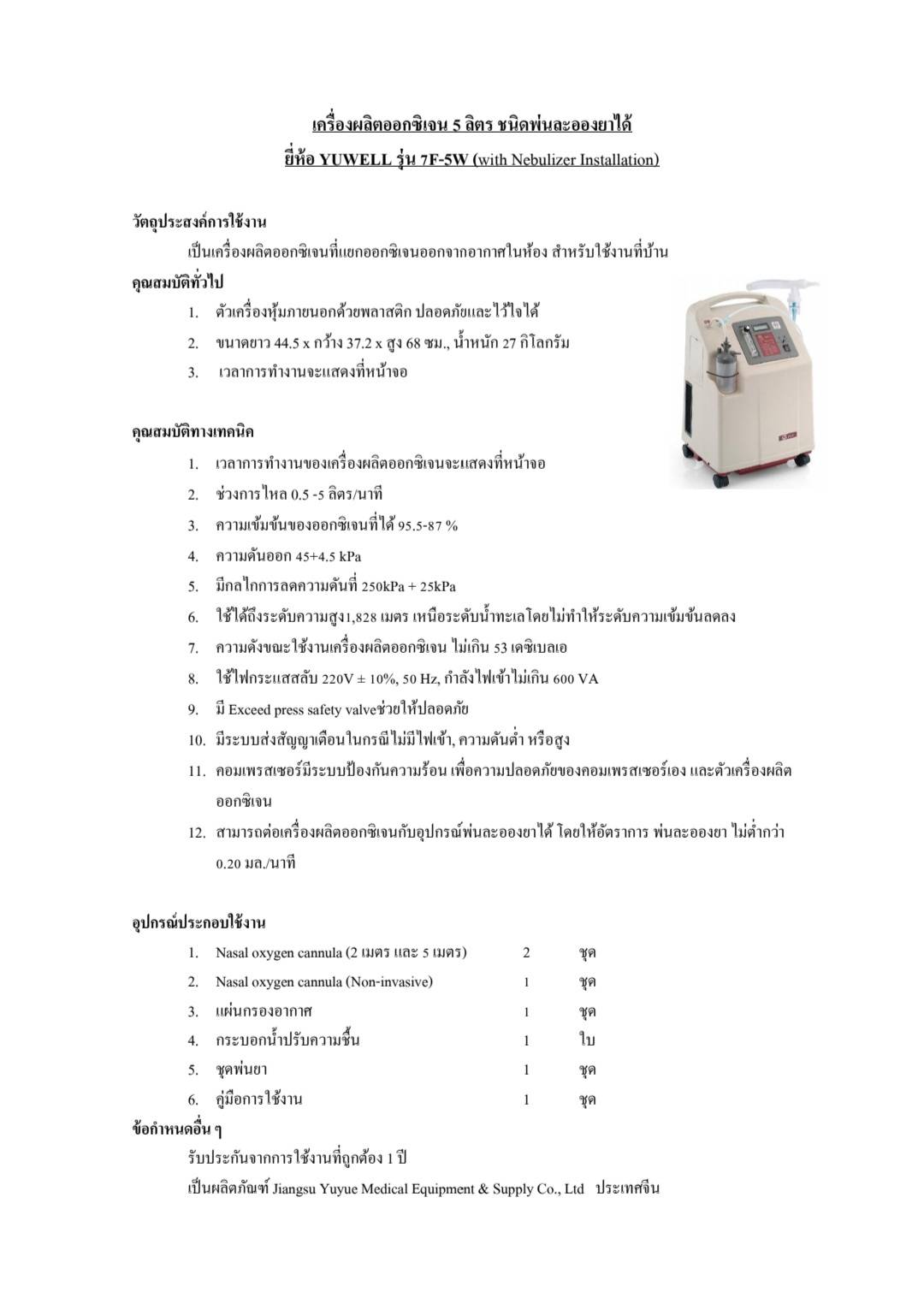 เครื่องผลิตออกซิเจน 5 ลิตร พ่นยาได้ ยี่ห้อ Yuwell รุ่น 7F-5W (Oxygen Generator)