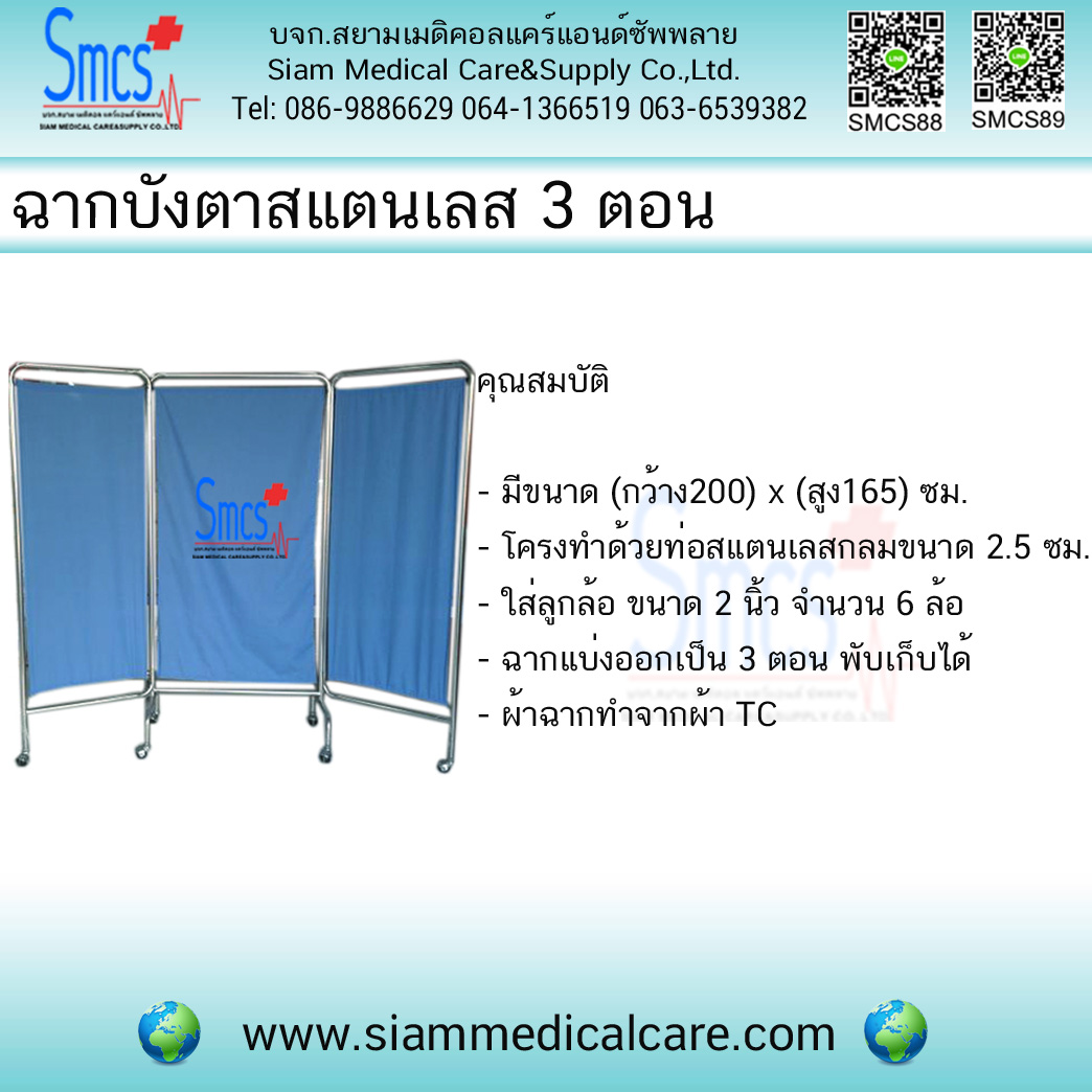ฉากบังตาสแตนเลส 3ตอน พร้อมผ้าคุณสมบัติ