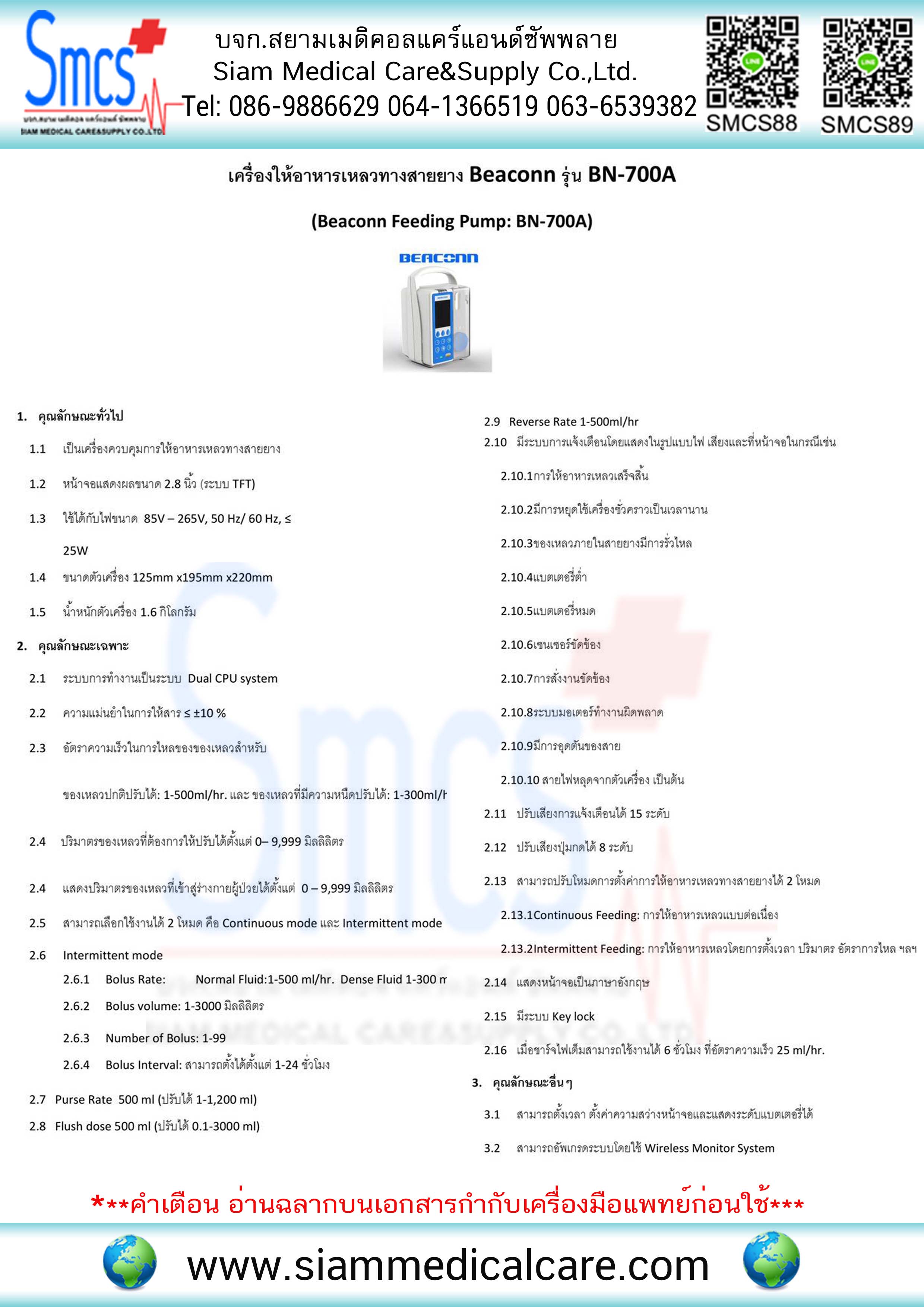 เครื่องให้อาหารทางสายยาง ยี่ห้อ Beaconn รุ่น BN700A แถมถุงให้อาหารพร้อมสาย 500ml 2 ใบ