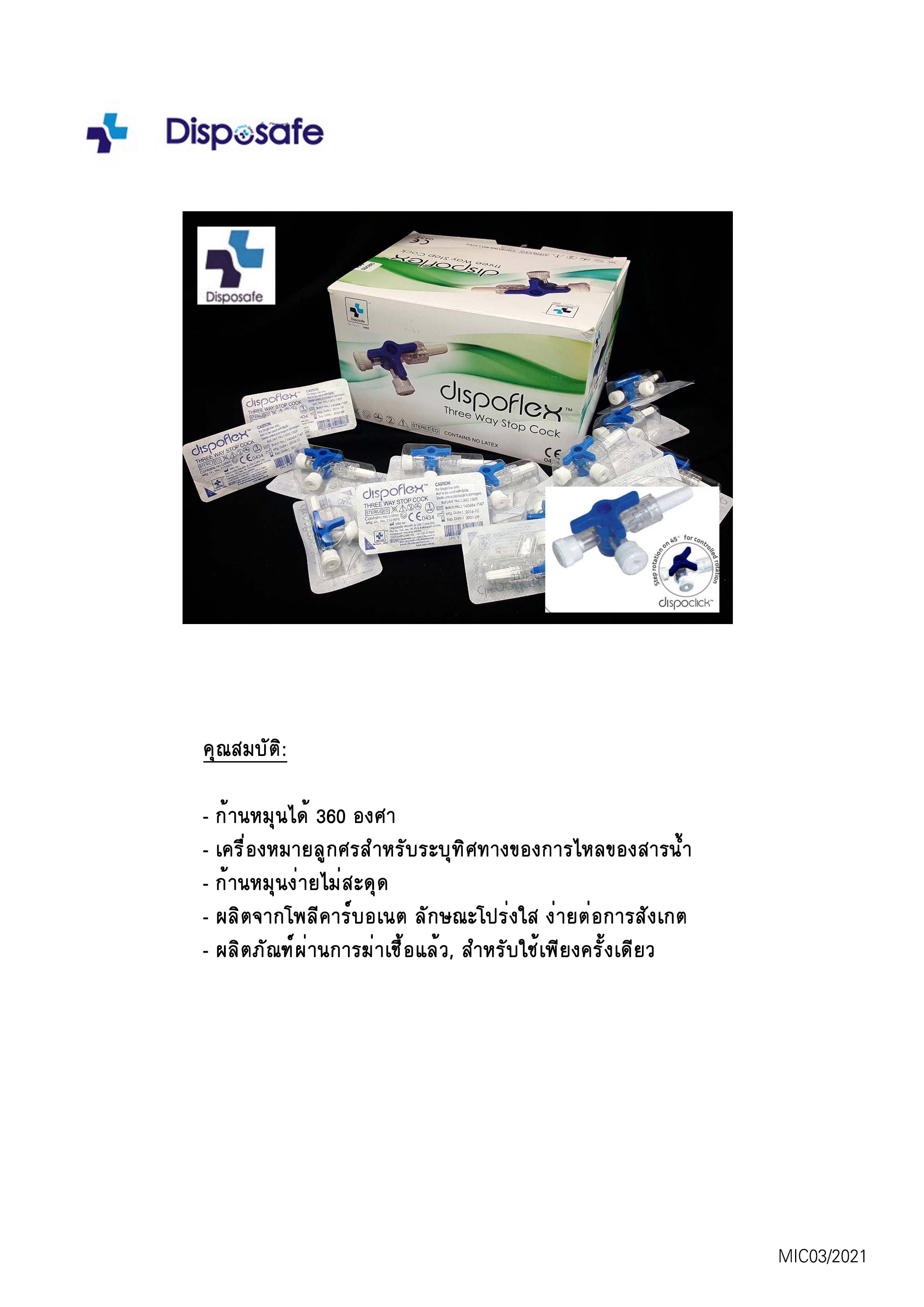 ทรีเวย์สตอปค็อก THREE WAY STOP COCK ยี่ห้อ DISPOFLEX (50ชิ้น/กล่อง)