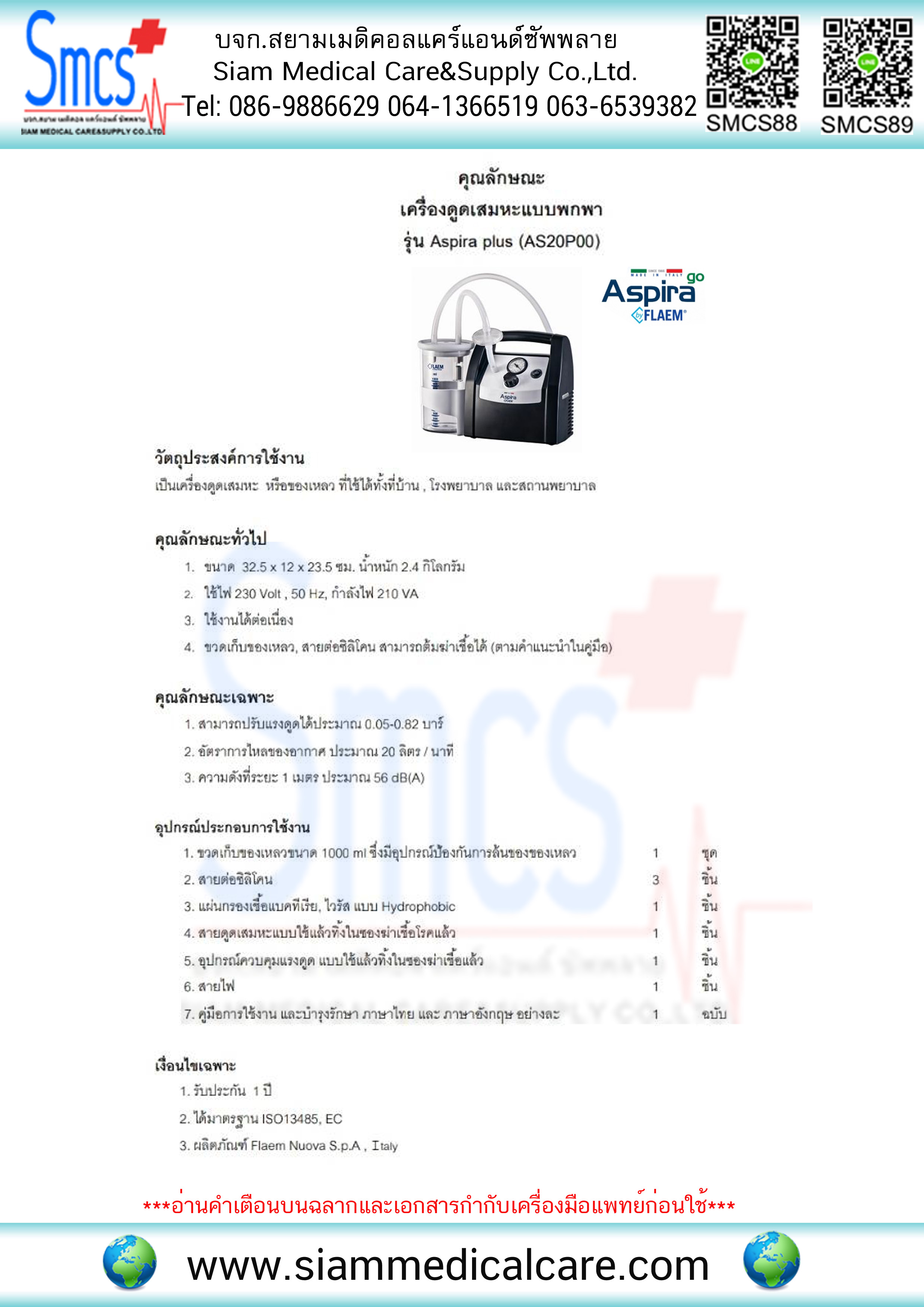 เครื่องดูดเสมหะแบบพกพา ยี่ห้อ Fleam Aspira Plus (AS20P00)