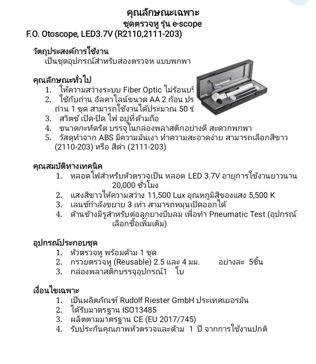 ชุดตรวจหู Otoscope Riester รุ่น R 2111-203 E-Scope Oto LED 3.7V,Black