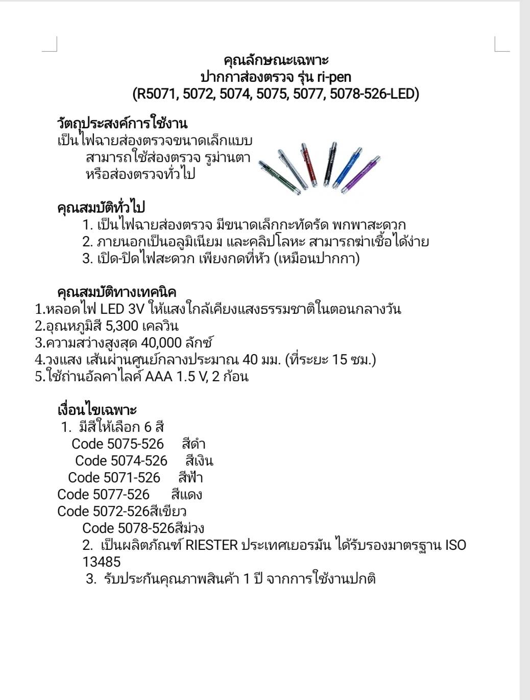หยิบลงตะกร้า | ปากกาแสง Riester Penlight R5077-526 ![]()