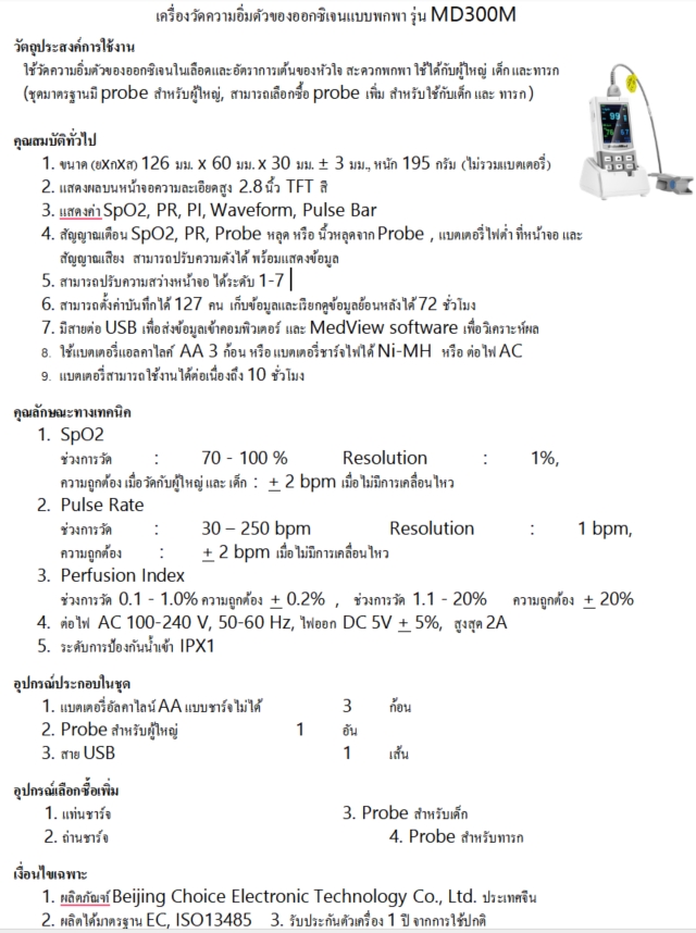 เครื่องวัดออกซิเจนปลายนิ้ว ( Handheld Pulse Oximeter ) ยี่ห้อ Choicemmed รุ่น MD300M ![]()