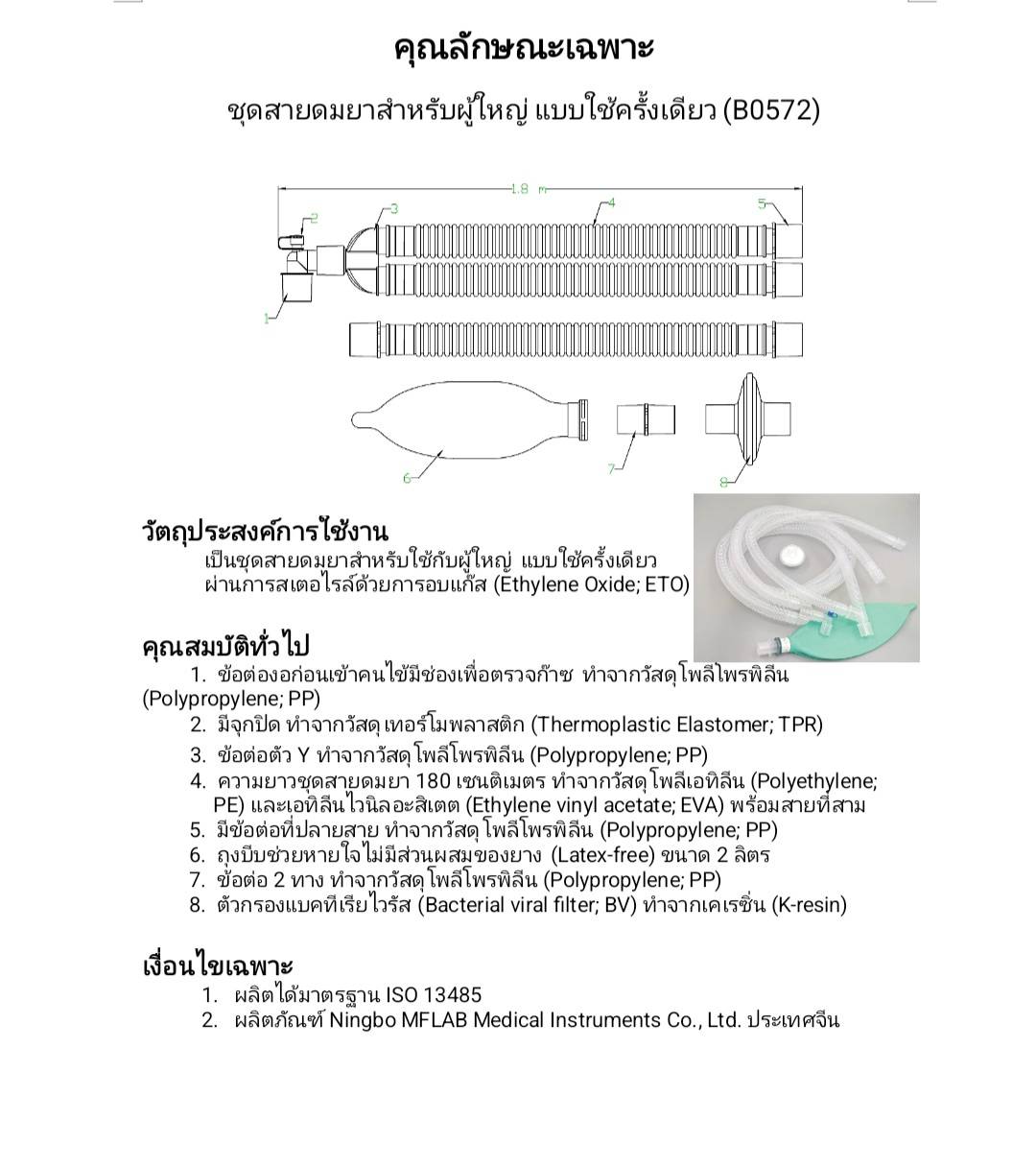 ชุดสายดมยาแบบใช้ครั้งเดียว Disposable Breathing Circuits ADULT MF-B0572
