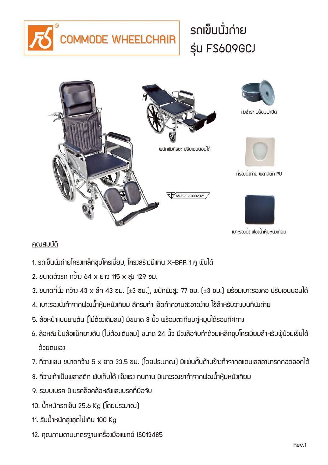 รถเข็นนั่งถ่ายเหล็กชุบโครเมี่ยม Fosun รุ่น FS609GCJ